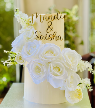 Pink Floral Theme Wedding Cake